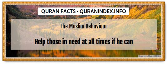 The Muslim Behaviour Help those in need at all times if he can.