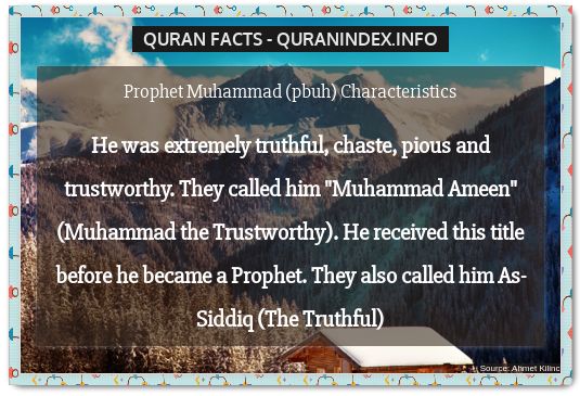 Prophet Muhammad (pbuh) Characteristics He was extremely truthful, chaste, pious and trustworthy. They called him “Muhammad Ameen” (Muhammad the Trustworthy). He received this title before he became a Prophet. They also called him As-Siddiq (The