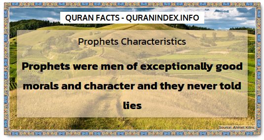 Prophets Characteristics Prophets were men of exceptionally good morals and character and they never told lies.