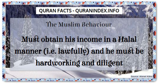 The Muslim Behaviour Must obtain his income in a Halal manner (i.e. lawfully) and he must be hardworking and diligent.