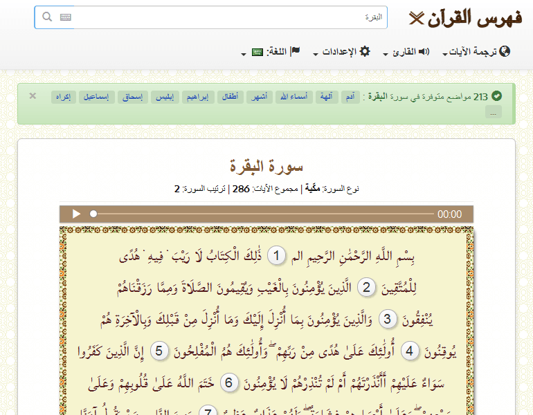 البحث عن 457 مواضع متوفرة في سورة البقرة : هارون الذلة إبراهيم الإلغاء آدم الموعظة العهد الخمر الله أسماء الله الآباء ...