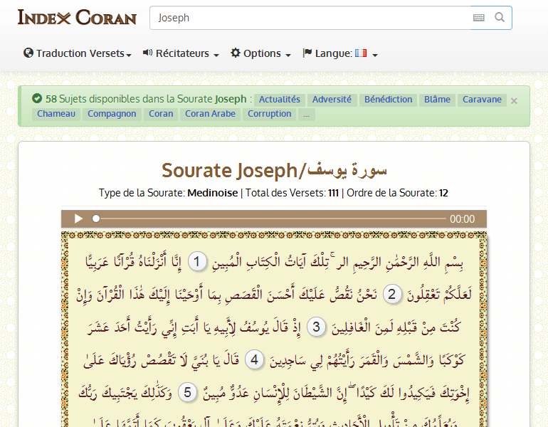 Rechercher 169 Sujets disponibles dans la Sourate Joseph : Abraham Alcool Noms Allah Ancêtres Égarement Croyance Croyant Trahison Blâme Bienfait Pain ...