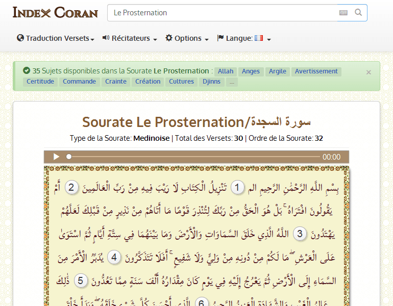 Rechercher 91 Sujets disponibles dans la Sourate Le Prosternation : Allah Noms Allah Anges Orgueil Égarement Lit Croyance Croyant Certitude Enfant Enfants d'Israël ...