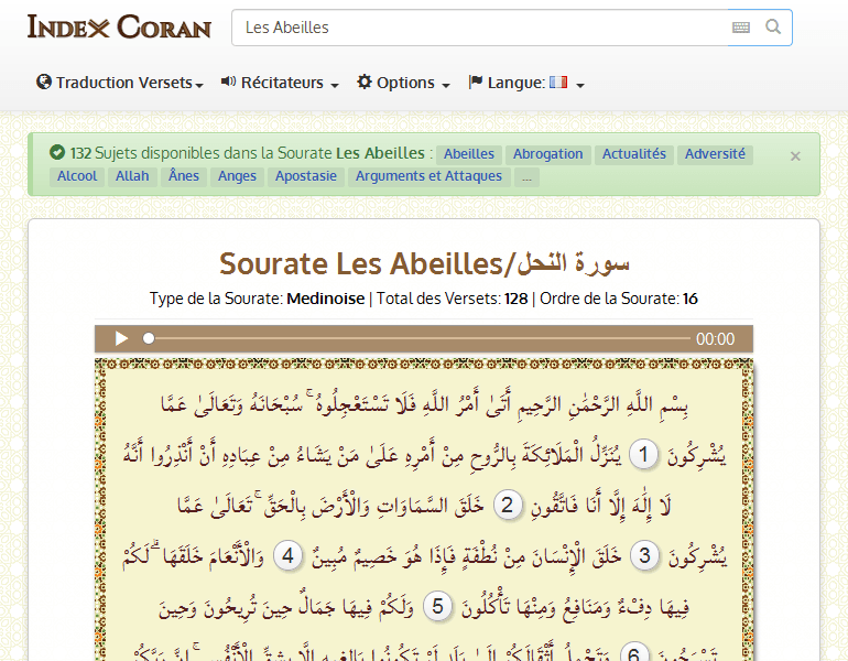 1¡La orden de Alá viene! ¡No queráis adelantarla! ¡Gloria a Él! Está por encima de lo que Le asocian.2Hace descender a los ángeles con el Espíritu que procede de Su orden sobre quien Él quiere de Sus siervos: «¡Advertid que no hay otro dios que Yo! ¡Temedme, pues!»3Ha creado los cielos y la tierra con un fin. Está por encima de lo que Le asocian.4Ha creado al hombre de una gota y ¡ahí le tienes, porfiador declarado!5Y los rebaños los ha creado para vosotros. Hay en ellos abrigo y otras ventajas y os alimentáis de ellos.6Disfrutáis viéndolos cuando los volvéis por la tarde o cuando los sacáis a pastar por la mañana.7Llevan vuestras cargas a países que no alcanzaríais sino con mucha pena. Vuestro Señor es, en verdad, manso, misericordioso.8Y los caballos, los mulos, los asnos, para que os sirvan de montura y de ornato. Y crea otras cosas que no sabéis.9A Alá le incumbe indicar el Camino, del que algunos se desvían. Si hubiera querido, os habría dirigido a todos.10Él es Quien ha hecho bajar para vosotros agua del cielo. De ella bebéis y de ella viven las matas con que apacentáis.11Gracias a ella, hace crecer para vosotros los cereales, los olivos, las palmeras, las vides y toda clase de frutos. Ciertamente, hay en ello un signo para gente que reflexiona.12Y ha sujetado a vuestro servicio la noche y el día, el sol y la luna. Las estrellas están sujetas por Su orden. Ciertamente, hay en ello signos para gente que razona.13Las criaturas que Él ha puesto en la tierra para vosotros son de clases diversas. Ciertamente, hay en ello un signo para gente que se deja amonesta14Él es Quien ha sujetado el mar para que comáis de él carne fresca y obtengáis de él adornos que poneros. Y ves que las naves lo surcan. Para que busquéis Su favor. Quizás, así, seáis agradecidos.15Y ha fijado en la tierra las montañas para que ella y vosotros no vaciléis, ríos, caminos -quizás, así, seáis bien dirigidos-16y mojones. Y se guían por los astros.17¿Acaso Quien crea es como quien no crea? ¿Es que no os dejaréis amonestar?18Si os pusierais a contar las gracias de Alá, no podríais enumerarlas. Alá es, en verdad, indulgente, misericordioso.19Alá sabe lo que ocultáis y lo que manifestáis.20Aquéllos que ellos invocan en lugar de invocar a Alá, no crean nada, sino que ellos son creados.21Están muertos, no vivos. Y no saben cuándo serán resucitados.22Vuestro Dios es un Dios Uno. Los corazones de quienes, altivos, no creen en la otra vida Le niegan.23¡En verdad, Alá sabe lo que ocultan y lo que manifiestan! No ama a los altivos.24Si se les dice: «¿Qué ha revelado vuestro Señor?», dicen: «Patrañas de los antiguos».25¡Que lleven su carga completa el día de la Resurrección y algo de la carga de los que, sin conocimiento, extraviaron! ¡Qué carga más detestable!26Sus antecesores intrigaron. Alá vino contra los cimientos de su edificio y el techo se desplomó sobre ellos. Les vino el castigo de donde no lo presentían.27Luego, el día de la Resurrección, Él les avergonzará y dirá: «¿Dónde están Mis asociados, sobre los que discutíais?» Quienes hayan recibido la Ciencia dirán: «Hoy la vergüenza y la desgracia caen sobre los infieles,28a quienes, injustos consigo mismos, los ángeles llaman». Ofrecerán someterse: «No hacíamos ningún mal». «¡Claro que sí! ¡Alá sabe bien lo que hacíais!29¡Entrad por las puertas de la gehena, por toda la eternidad!» ¡Qué mala es la morada de los soberbios!30A los que temieron a Alá se les dirá: «¿Qué ha revelado vuestro Señor?» Dirán: «Un bien». Quienes obren bien tendrán en la vida de acá una bella recompensa, pero la Morada de la otra vida será mejor aún. ¡Qué agradable será la Morada de los que hayan temido a Alá!31Entrarán en los jardines del edén, por cuyos bajos fluyen arroyos. Tendrán en ellos lo que deseen. Así retribuye Alá a quienes Le temen,32a quienes, buenos, llaman los ángeles diciendo: «¡Paz sobre vosotros! ¡Entrad en el Jardín, como premio a vuestras obras!»33¿Qué esperan sino que vengan los ángeles o que venga la orden de tu Señor? Así hicieron sus antecesores. No fue Alá quien fue injusto con ellos, sino que ellos lo fueron consigo mismos.34Les alcanzará la misma maldad de sus acciones y les cercará aquello de que se burlaban.35Dirán los asociadores: «Si Alá hubiera querido, ni nosotros ni nuestros padres habríamos servido nada en lugar de servirle a Él. No habríamos prohibido nada que Él no hubiera prohibido». Así hicieron sus antecesores. Y ¿qué otra cosa incumbe a los enviados, sino la transmisión clara?36Mandamos a cada comunidad un enviado: «Servid a Alá y evitad a los taguts». A algunos de ellos les dirigió Alá, mientras que otros merecieron extraviarse. ¡Id por la tierra y mirad cómo terminaron los desmentidores!37Si anhelas dirigirles,... Alá no dirige a quienes Él extravía y no tendrán quien les auxilie.38Han jurado solemnemente por Alá: «¡Alá no resucitará a quien haya muerto!» ¡Claro que sí! Es una promesa que Le obliga, verdad. Pero la mayoría de los hombres no saben.39Para mostrarles aquello en que discrepaban y para que sepan los infieles que han mentido.40Cuando queremos algo, Nos basta decirle: «¡Sé!», y es.41A quienes han emigrado por Alá, después de haber sido tratados injustamente, hemos de procurarles una buena situación en la vida de acá, pero la recompensa de la otra será mayor aún. Si supieran...42Que tienen paciencia y confían en Alá...43Antes de ti, no enviamos sino a hombres a los que hicimos revelaciones -si no lo sabéis, preguntad a la gente de la Amonestación-,44con las pruebas claras y con las Escrituras. A ti también te hemos revelado la Amonestación para que expliques a los hombres lo que se les ha revelado. Quizás,, así, reflexionen.45Quienes han tramado males ¿están, pues, a salvo de que Alá haga que la tierra los trague, o de que el castigo les venga 